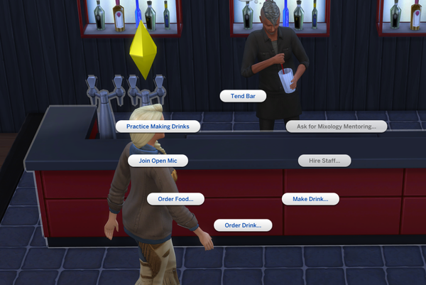 Please use this thread if your Sims stay behind the bar and start socializing/idle interactions. This will make the interactions temporarily disappear. In my case they always came back after a short while.