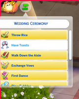 When a wedding event begins, it has the Getaway UI in the top left. This means there's no timer counting down the few hours of the event, so it never ends. My sims are unable to leave the lot or force quit the event. Switching control to an off-lot sim will allow me to bring my sims home from the wedding event, but the game doesn't count it as completed. Since you can only schedule one wedding event at a time and they are never counted as finished, I can't do more than one wedding event per household.