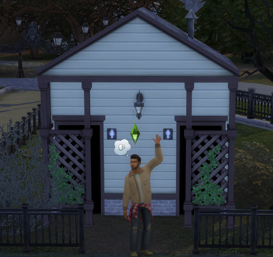 If you click on the "Toilet" bladder button in the "Sim needs" panel, the Sim will wave its hand to indicate that it cannot use the Nature Event Outhouse Toilet Reward. It can only be used if you click directly on the outhouse and select "Use Toilet". Is this a bug or is it done on purpose and if so, why? Tested other toilets and they all work, Sim will use them by just clicking on the bladder icon, not this one though. Shouldn't it be possible to use this toilet like all other toilets by clicking on the bladder icon?