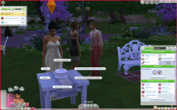 It's the middle of the wedding event, they've exchanged their vows, she's baked a cake and put a wedding topper on it, but now she can't "take a piece" or "take a piece together" .. these options are greyed out, with the message "You must wait for the newlyweds to take the first slice."