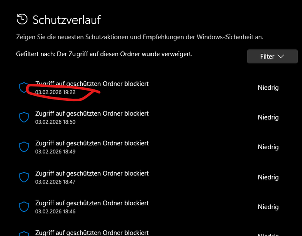 If you go to Controlled Folder Access --> Block History. Do you find any current blocks there ?