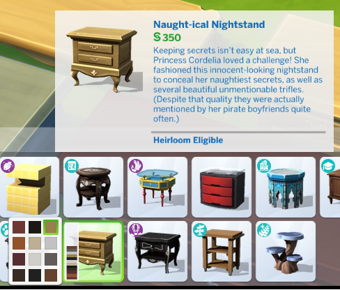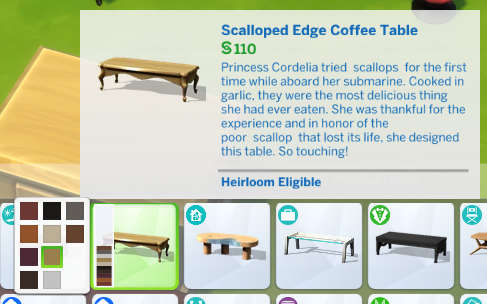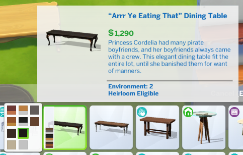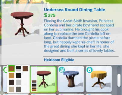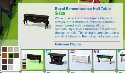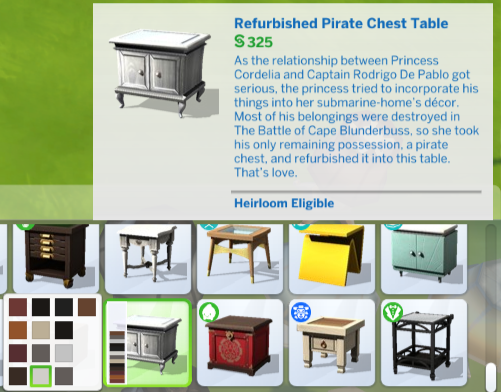 All tables in the Princess Cordelia set have swatch inconsistencies. Several pieces are missing the colorful swatches found on the matching sofa and chair set, and the tables also don’t match each other in available colors.