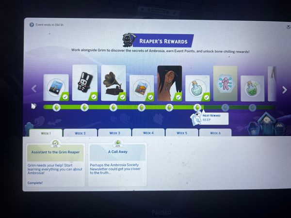I recently started playing sims again and I was going through to do the reapers rewards. I was able to finish Assistant to the Grim Reaper from week 1 but ever since I haven’t had a quest pop up.