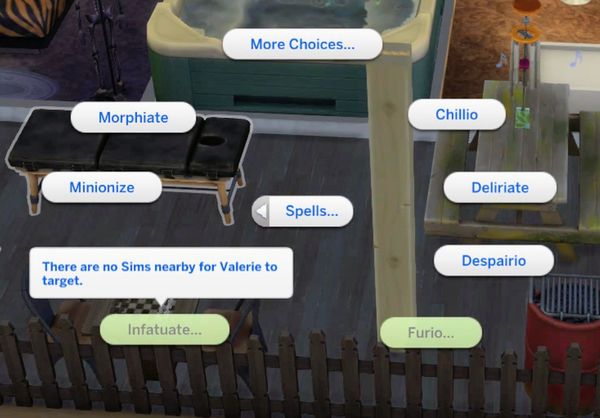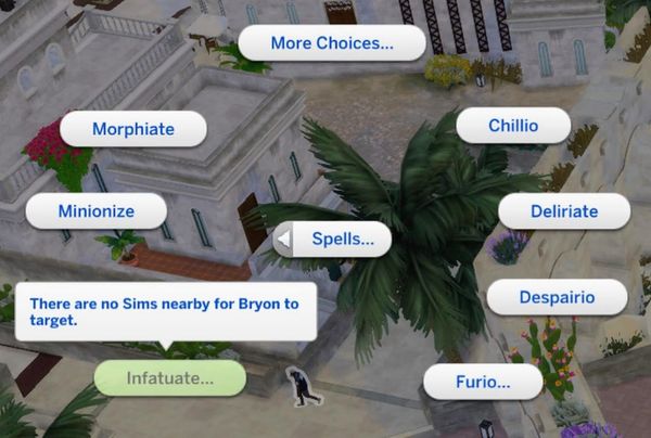I have a maxed out spellcaster sim who knows the infatuate spell, but no matter who I click on to try to get a sim to have infatuate cast on them, regardless of how many available or compatible sims may be around on the same lot, the spell is greyed out with a message that says "no valid sims to target" and I do not understand why the spell seems like it has no valid operations in it. I even went as far as to verify that the sims I wished to use it on were single in case preexisting relationships were the issue, and then even checked their romance/woohoo interests to make sure those were compatible enough too but no luck. I think if infatuate is to remain in the game as a spell, it should technically work on anyone since it is magic and magic tends to be an unnatural influence over other gameplay aspects (which is what I find fun, I mean who doesn't like to use Strangify on a romantic rival so the sim of your dreams is repulsed by them? Or even Dedeathify so you don't have to buy a potion or learn to make Ambrosia!?)