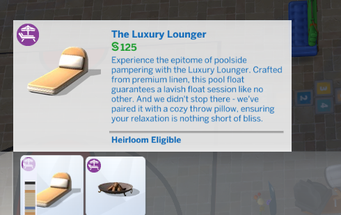 All pool floaters from other packs show in the Pool Items Category, however it does not for the one from Rivera Retreat.