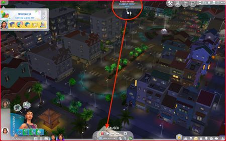[S] Father Winter appears at far edge of neighborhood instead of on lot