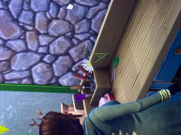 After making a flower arrangement on the Violets Are Blue Flower Arranging Table and either putting it in your inventory or selling it, the flowers of the arrangement are left floating in air above the table.