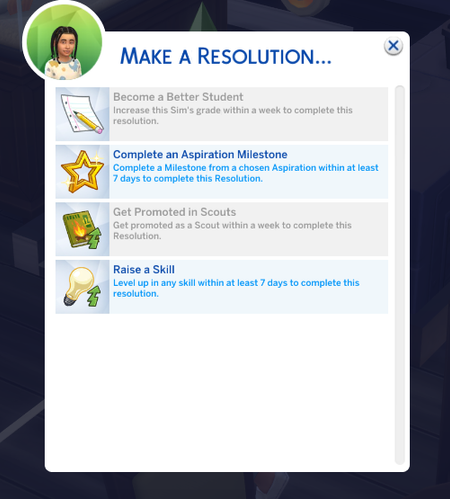 These after school activites are missing for child/teen sims when they Make a Resolution.