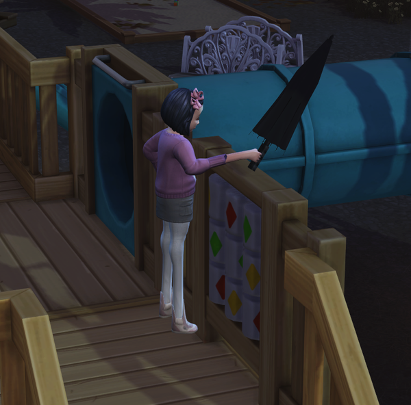 Since 'Adventure awaits' toddlers in the game are using umbrellas when it rains.
