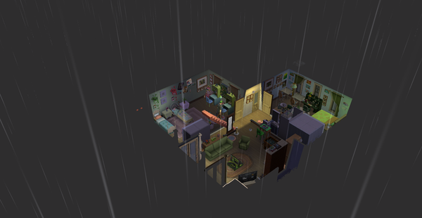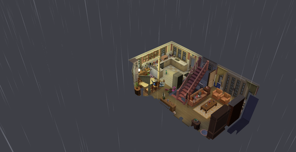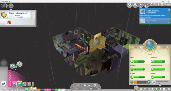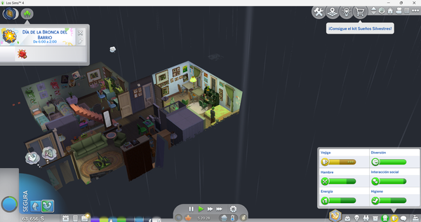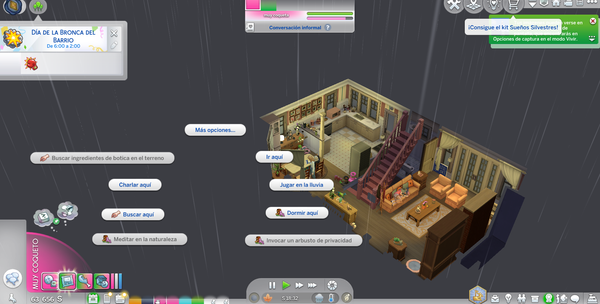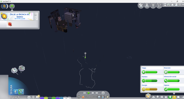 Outside picture from the 4th floor of the house.The same happens in build mode, in any time of the dayThis lot has a bunch of activities to do outside, like a pool, a grill and some child games from "For Rent" and "Adventure Awaits" but you cant even see the big playground i put there.