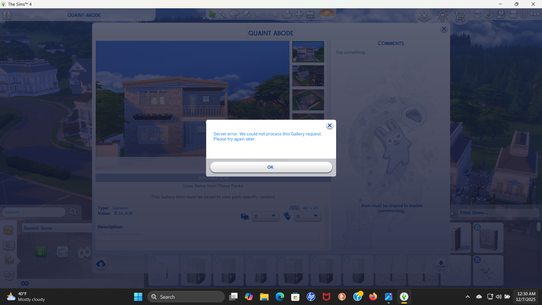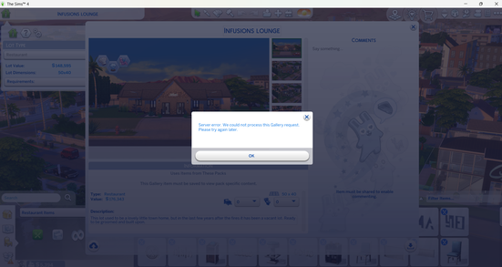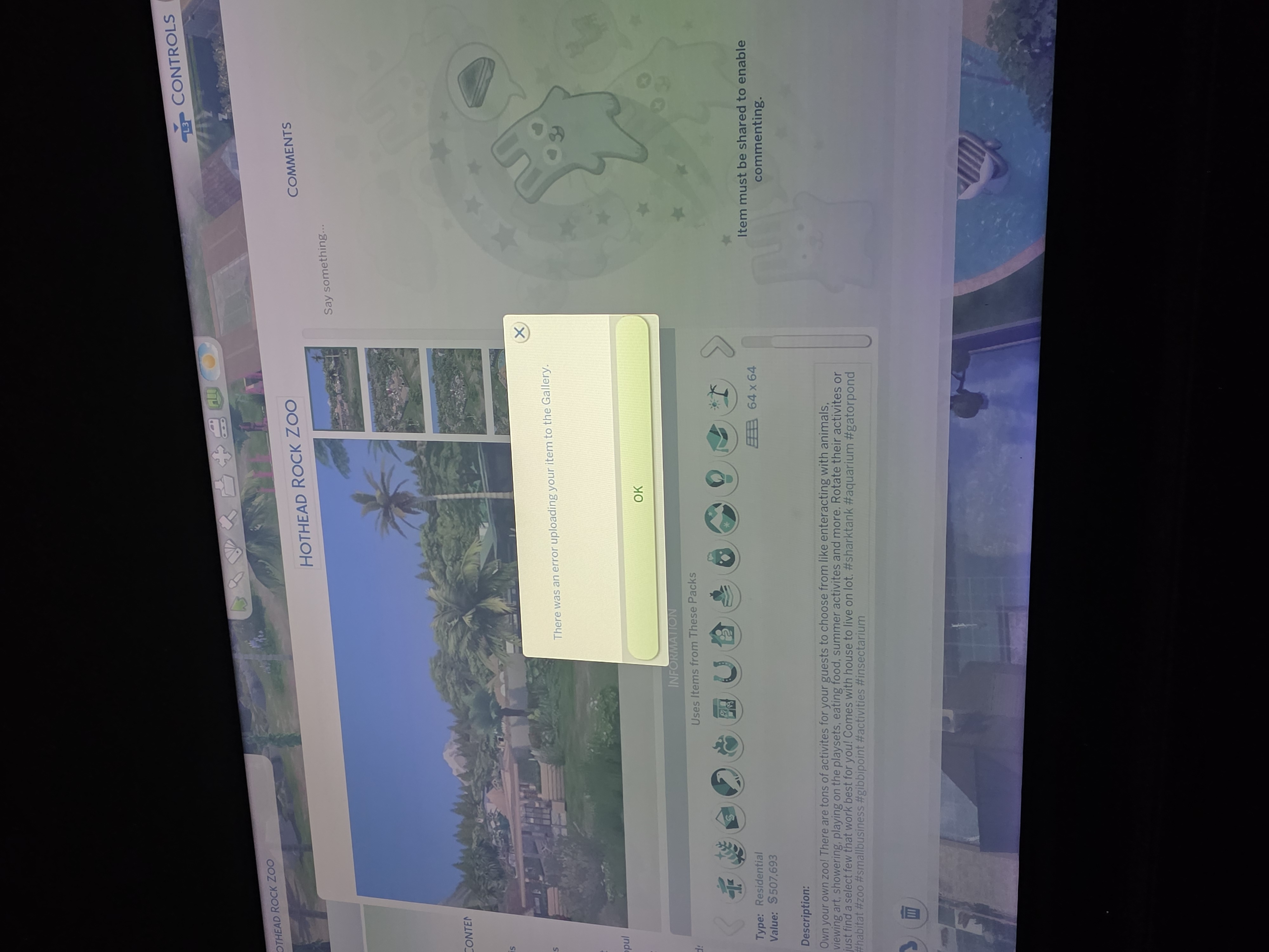 (This has already been reported) Lately I can’t save things to the gallery mostly being builds I’ve made in game it keeps coming up with a server error and it keeps happening whether I’ve closed the game or choose to play a completely different save , I play ps4 so I have no mods but my ea account is also the same one I use on my laptop which I did use anadius on it so I think the two might be connected.