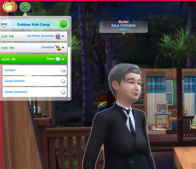When sending child sim to camp gibbi gibbi getaway the household butler joined - they were not assigned to any of the getaway roles.
