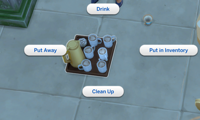WHAT HAPPENS: When drinks spoil on a Drink Tray and a player commands a Sim to "Clean Up", Sims will only pick up a single drink and wash it. This means players have to command a Sim to "Clean Up" Drinks repeatedly (queuing the action up to 6x total).