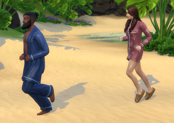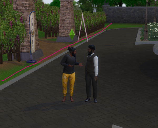 These sims  (above) are completely off the lot and Shawn (left) is still in his PJs while talking to his neighbor.