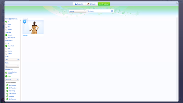 Sims with CC in Library not found when Searching by Hashtag