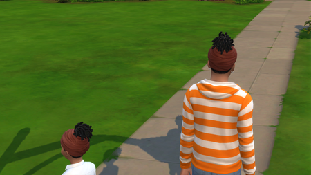 These are the other two hairs, the top one from Dine Out and the bottom is Perfect Patio. The Dine Out one is not as bad, it can only be seen from some distance at the back on the bottom half around the head. The Perfect Patio one is the same but from the front and look above or straight on. It's hard to tell in the photos (maybe because the Sims are outside too instead of indoor lighting).