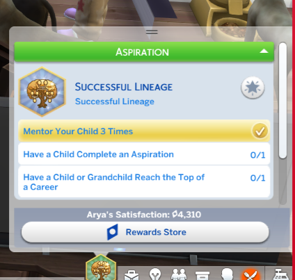 anyway, so my sim is currently trying to complete the Successful Lineage aspiration. i am having issues with two of the tasks not showing up as complete. one being “Have a Child Complete an Aspiration,” which I have already had her child complete 2 and neither times did it mark off as completed.