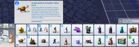 These two objects from Strangerville appear under the children's toys category when they're decorations: Crabby Bottom Armadillo Yellow Wacky wonderful Carnival Sock Alien