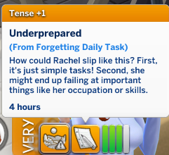 After Thursday's work I usually do the daily task to complete in the same day to prevent forgetting, and I double check if it shows as (Complete) but even then the moodlet Underprepared keep showing during the mid of next Tuesday (the next first working day) I try repeat doing the daily task on Monday evening, the moodlet still occur during in the Tuesday too.
