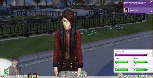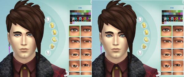 What happens when the bug occurs?: Caleb's customized eyes revert to his template version: they become small and differently shaped. This also happens if he is cured of vampirism.