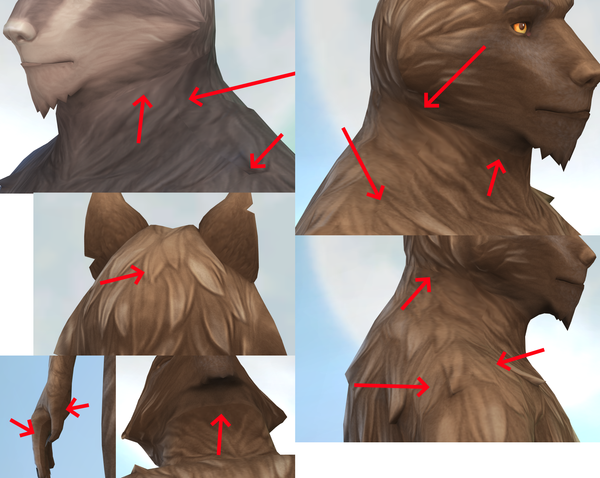 And on the back of the neck the textures jump from an overall nice look to something straight up pixelated/blurry. The colors also look off when compared to the head.