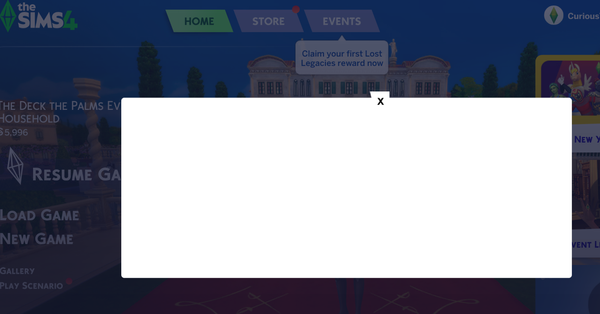 When launching my game after 1.121.361 patch, I get a white pop-up for some kind of ad that is accompanied by a lastuiexception. No idea what the ad is supposed to be for, maybe the new pack (I DO NOT have the new pack)? I'm able to just x out of it without any issue, but wanted to mention it anyway.