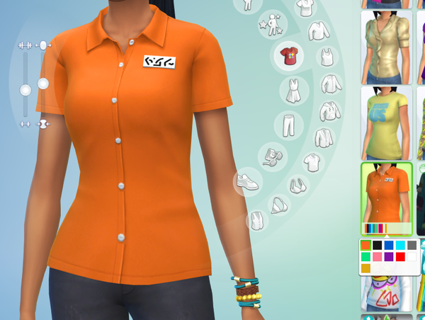 The name tag and buttons clearly weren't supposed to be the same color as the shirt, plus the name tag mesh is broken. The male version is also missing the yellow swatch.