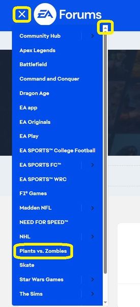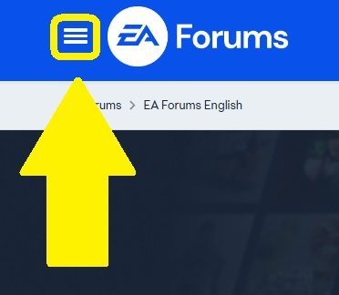 - Schau oben links auf deinen Bildschirm. Siehst du das EA-Foren-Logo und die drei Balken links daneben? Das ist ein Dropdown-Menü. Klicke darauf, und alle Bereiche in deiner gewählten Sprache werden angezeigt.