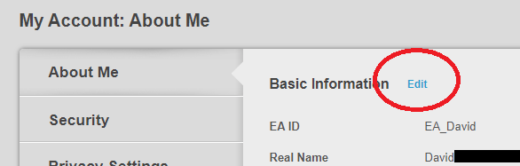 4: Sobald dies erledigt ist, kannst du deine EA-ID sowie einige andere persönliche Daten bearbeiten.