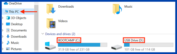 If you're not sure how many drives your computer has, or what letters have been assigned, open a File Explorer window and click This PC in the left panel to view them.