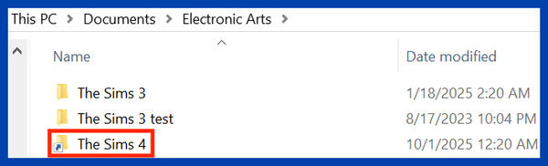 You could instead create a symbolic link for the Electronic Arts folder, for example if you want to move data for Sims 3 and 4 at the same time. These instructions are written with moving the Sims 4 folder in mind, but the principle is the same; just change the file paths accordingly. It is also possible in theory to move a subfolder inside Sims 4, e.g. Mods, but in practice, this can lead to files not loading or showing as corrupted, so it's generally best to move at least the entire Sims 4 folder.