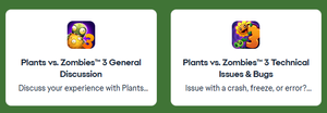 I have some suggestions for the Plants vs Zombies section: Make a section for PvZ Heroes, PopCap seems to want to revive the game with its latest update. Add these to a subsection of Plants vs Zombies 3 instead of being in the main section: Make proper tags as some categories are lacking them (Feedback, Bug Report, etc.) Could Plants vs. Zombies™ 3 Technical Issues & Bugs | EA Forums use the structure The Sims 4 Bug Reports | EA Forums has? With proper tags like when a bug its under investigation, fixed, etc.My PvZ Heroes - Card Balance Changes. (+Bugs)
