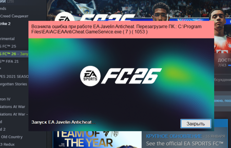 When I played the game at launch I never suffered any problems but now I've noticed FPS stutters when playing and no matter what I try to do nothing fixes it. When I'm in game my CPU and GPU sit at around 30-50% utilisation which causes the game to stutter. I have even since upgraded my CPU and GPU and still getting the same experience. I can play the game without stutters at 1080p but it still is only utilising 30-50%. I have upgraded components I have reinstalled windows. I have turned on hardware accelerated gpu scheduling. I have changed Nvidia control panel settings. I've reinstalled the fc24 anti cheat instead of FC25 I've made the filed read only. Yet nothing seems to work. Yet my hardware should be more than fine to run it. CPU: Intel i5 14600k GPU: Nvidia RTX 4070 RAM: 32GB DDR5 6000mhz SSD : 1tb Crucial P3 Plus NVME Any help would be appreciated only want to play career mode 😂720Views1like2CommentsFc 26 wyłącza się