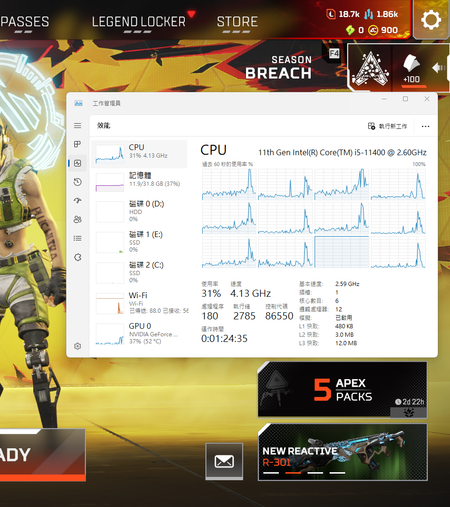 Hi Respawn Team, I’m reporting a persistent micro-stuttering issue in Apex Legends that has made the game difficult to enjoy. After extensive troubleshooting, I’ve pinpointed a specific behavior: one single CPU thread consistently hits 100% usage (while overall usage is normal). Additionally, the "System" process in Task Manager sometimes spikes above 20% during these stutters. Interestingly, the CPU usage on that specific thread drops slightly when the mouse is stationary, but spikes back up immediately upon movement. My Specs: CPU: Intel Core i5-11400 GPU: NVIDIA GeForce RTX 3060 Ti RAM:16GB+16GB OS: Tested on both Windows 10 and 11 Troubleshooting Steps Taken (None have resolved the issue): Frame Rate & Settings: Capped at 60/120 or Uncapped; Video settings toggled between Low and High. The single-thread bottleneck remains regardless of these changes. Launch Options: Tested both -no_render_on_input_thread and -render_on_input_thread. Drivers & Software: * Clean GPU driver install using DDU. Uninstalled Realtek 2.5 GbE Family Controller. Disabled all overlays (Discord, NVIDIA App, Xbox Game Bar). Turn On/Off Windows Game Mode, HAGS, and Core Isolation (VBS). Turn On/Off NVIDIA Reflex, G-SYNC, and V-Sync (both in-game and NVCP). Added Apex/EAC to Windows Defender exclusions; Running game and EA App as Administrator. Swapped different keyboards and mice. Removed all unnecessary USB devices. Cleared Apex/Shader caches and performed a clean reinstall of the game. Hard drive health and temperatures are all normal. I’ve spent a significant amount of time trying to fix this,I really want solve this problem.I love this game. If anyone has successfully resolved this specific CPU thread bottleneck, please share your solution! I would also appreciate it if the dev team could look into potential conflicts between the game's engine and certain CPU/Driver configurations or Easy Anti Cheat. Thank you for your help! Lobby CPU10 100% usage Fire Range BR Map - World EdgeApex freezes the entire PC after 05.03.2025 update
