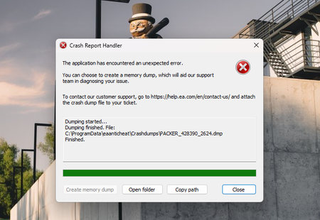 Cześć, Mam problem z EA Sports FC 26 na PC (Steam, Windows 11). Po kliknięciu „Graj” gra od razu się wyłącza i pojawia się błąd EA AntiCheat / Crash Report Handler. Gra w ogóle się nie uruchamia. Czy możecie pomóc mi rozwiązać ten problem?Solved231Views0likes17CommentsError 95 javelin anticheat. Game crash