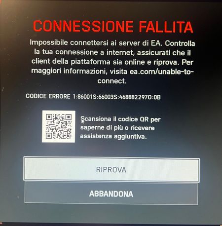 ogni volta che avvio f125 e arrivo alla schermata di”clicca un qualsiasi tasto”lì inizia a caricare e il gioco crasha,avvolte supera anche questo caricamento ma crasha comunque. ho provato a riparare l’anicheat,disinstallaro e installarlo dinuovo e tante altre cose ma nessuna soluzione. [Titolo modificato dal moderatore per chiarezza. EA_CLaus]14Views0likes1CommentConnessione Fallita (pc win11)