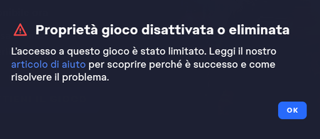 EA APP Proprietà gioco disattivata o eliminata