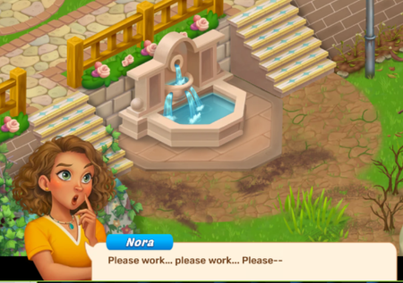 I'm not sure what level I'm on but I'm stuck at the story screen with the fountain that starts with "Safety inspector Phil speaking..." Ironically, The screen where Nora says "Please work... please work..." to get the fountain working won't advance. The skip screen doesn't work when I tap on it, like it's frozen. I was playing on my android phone, and then tried it on a laptop in Firefox, it's still stuck. I can at least click on the "skip" button but it doesn't do anything. I can't play the game anymore because it's stuck on this screen.Stuck On Chapter One At 90% In Card Scramble