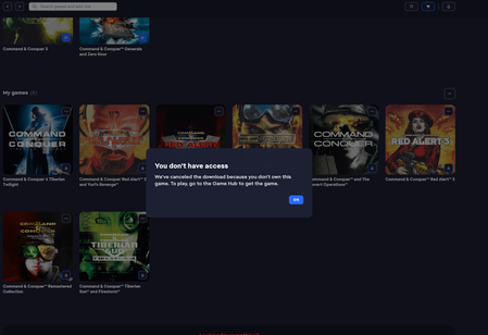 When I purchased the cnc games I was Not informed internet access was mandatory to play any of these games campaigns, skirmish requires no internet online or other features that don’t require online access. This is EA security measures stopping these old games working correctly but they can just blame uses pc and keep the money well those with no connection to internet no longer have access to games they paid for. Most of these cnc games do not require internet connection. Iv followed ever path to try get original cnc working with zero success. Tiberian war/firestorm doesn’t work. Ut add a patch and it does st& , generals/zero hour require online access to start. Should have kept all my cd versions at least then I could call them my games All these downloads are not uses games even if you paid full price EA APP own them and we pay for that.!!!EA, please bring "Command & Conquer: The Ultimate Collection" to GOG.