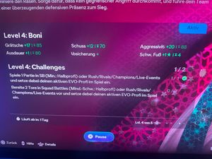I am facing a problem related to the "I'll protect you" evolution. At stage 4 of the evo the objective to assist two goals is not counted as completed. It shows the objective as completed in match but it does not count wehn the game is finished. I also get a message after the game in the post mazch screen that there was a problem related to "server-validation". What I already tried without any success so far: - logged out of my account and logged in again - paused the evo and resumed it - paused the evo started a different evo with another player, paused that evo after the first objevtive and resumed the former evo - stopped scoring after having achieved exactly 2 assists (in game objevtive was not marked as completed; result: no error message but also objective not completed) - stopped scoring when the objective was shown as completed ingame (which is not after 2 assists but randonly after sometimes 3, sometimes 5 assists) result: error message in the post match screen and objevtive not completed It is very(!) frustrating spending 100k coins on an evo and then having it bug out so I hope this will be fixed asap.303Views9likes7CommentsKlackern im Spiel mit bestimmten Spielern nach EVO