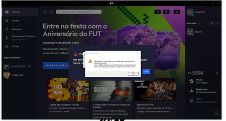 Eu peguei a game pass ultimate e queria baixar o FC 25 mas quando aperto em instalar ele manda ir habilitar o gerenciamento de extensão do EA app e eu habilito mas aparece o erro - 2147221163 de não conseguir instalar o FC 25 no app da xbox pc e tambem aparece: estamos com problemas de conexão com EA app. Tente reiniciar o aplicativo Xbox ou entrar em contato com o suporte do EA app102Views2likes3Commentsproblemas com ANTICHEAT erro 115