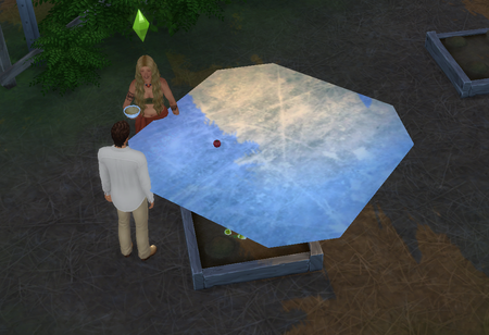 Has anyone experienced this in game & knows possibly how to fix it? I've done the normal trouble shooting of removing all CC/MODS & slowly going through my mods folder to find the issue. Even with Mods/CC removed & a new save is started this bug happens. You cannot delete the ice texture and a weird floating happens. This is in moonwood mill happens over the public garden area of the map. As far as I know this only happens in moonwood mill The current season is summer so I have no idea why this ice texture is appearing.Eye Color Changing When Exiting CAS