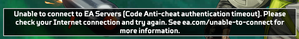 I kept receiving the following error when trying to connect to apex legends: "Unable to connect to EA Servers (Code Anti-cheat authentication timeout). Please check your Internet connection and try again. See ea.com/unable-to-connect for more information." I've tried the following: Switch off router for >30s and switch on Run apex legends and "EasyAntiCheat_EOS_Setup.exe" as administrator Verify file integrity via steam Re-installed Apex legends Nothing seems to work. I can access occasionally but most of the times i will receive this error. Could you please advice?5.4KViews39likes26CommentsPS5 login bug