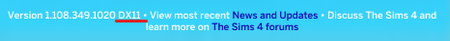 DirectX 11 (DX11) for The Sims 4 - A Step-by-Step Guide OVERVIEW DirectX 11, abbreviated as DX11, is a set of drivers from Microsoft that enhance visual and audio performance for games. Applying DX11 to The Sims 4 on a compatible PC can result in better performance, smoother animations, and overall improved gameplay experience. Please note that DX11 is not available for PlayStation or Mac systems. In our latest updates we have defaulted players using NVIDIA and AMD graphics cards to Direct X 11. NVIDIA and AMD graphics cards Players using NVIDIA or AMD graphics cards are now automatically set to use DirectX 11. If you had previously opted into DirectX 11 manually, please remove the "-dx11" argument to ensure smooth gameplay. Instructions are provided below. Note: If the "-dx11" argument is not removed, players will not have the option to view or select the DirectX 9 option from the in-game settings. Intel or other graphics cards Players using any other graphics cards, including Intel, will continue to enjoy The Sims 4 on DirectX 9 with an update to DirectX 11 to come at a later date. However if you would like to switch to DirectX 11, please follow the steps provided below. Check DirectX Version To verify that you are on DirectX 11, navigate to the main menu and check the bottom right corner of the screen. DirectX 11 Technical Issues and Feedback Thread For additional info, or to direct issues/feedback, please visit [DirectX 11 Technical Issues and Feedback Thread] Before reporting an issue please ensure that your graphics drivers are fully up to date: AMD Drivers NVIDIA Drivers If you wish to disable DX11 for the time being, please scroll to the end of this page for instructions. Important Reminder: Only scan QR codes from the following sources: The Sims 4 Main Menu in the game client, @TheSims and @TheSimsDirect official X.com channel Do not scan QR codes from the Gallery, forums, or AHQ HOW TO CHECK IF YOUR COMPUTER SUPPORTS DX11 Press the Windows key + R on your keyboard to open the Run dialog box. Type "dxdiag" and press Enter. In the DirectX Diagnostic Tool window that appears, click on the "Display" tab, or “Display 1” tab if you have a multi-monitor setup. Under the "Drivers" section, look for "Feature Levels". If “11_0” or higher is listed, your computer supports DX11. HOW TO ENABLE DX11 EA App & Epic Game Store & Game Pass for PC: Open the EA App on your computer. Find The Sims 4 in your game library. Click on the game advance settings (3 dot icon) above the play button. Select "View Properties". In the "Advanced launch options" box, type "-dx11" Click "Save" to apply the changes. Steam: Open Steam and go to your library. Right-click on The Sims 4 and select "Properties". Under the "General" tab, find the "Launch Options" box In the text field, type "-dx11" Click "OK" to save your changes. Desktop Shortcut: EA App: *Requires Windows Admin permission Right-click on The Sims 4 desktop shortcut and select 'Properties'. In the 'Target' field, add a space at the end and then type "-dx11". Click 'Apply', then 'OK' to save the changes. HOW TO DISABLE DX11 Follow the same steps as above to reach the "Command Line Arguments" box (EA App) or the "Set Launch Options" text field (Steam). Simply delete "-dx11" and save your changes. HOW TO FORCE DX9 If you run into issues launching The Sims 4 on your AMD or NVIDIA card after this update: Follow the same steps as above to reach the "Command Line Arguments" box (EA App) or the "Set Launch Options" text field (Steam). In the text field, type "-dx9" Click "OK" to save your changes. If you encounter any issues or need further assistance, please feel free to ask in this thread. Please be aware that we’re still fine-tuning our DX11 implementation and are aware of some existing issues. Further enhancements are on the way! HOW TO DISABLE DX11 - Through In-Game Options (ONLY players on NVIDIA or AMD graphics cards will be able to see this option) Launch The Sims 4 From the main menu, select Options → Game Options → Graphics In the “Graphics” tab, find the “DirectX 9” checkbox at the bottom right of the menu Click the “DirectX 9” checkbox The Sims 4 will run in DirectX 9 on the next launch388KViews52likes0Comments