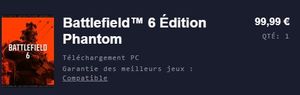 Bonjour à tous ! Hier j'ai acheter l'édition Phantom de BF6 PC sur EA PLAY pour 99,99€ avec Paypal. Valider, confirmer et débiter via mail par EA. Je download le jeu et m'aperçois que l'édition n'a pas été rajouter... Quel joie ! Maintenant je vois ça... Que ça me propose 30€ sur le store... Plusieurs sur les forums se plaignent et aucune réponse d'EA !19Views2likes1Comment[PB Connu] Battlefield 6: "Jeu non installé" alors que si