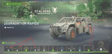 J'avoue que je ne me suis pas trop intéressé à ce menu, mais je voyais défiler des équipements ou skins lors des défis Là je viens de regarder et j'ai le "Traque mortelle" qui est indiqué comme "terminé" : 22/22 Je regarde dans les détails et je note que nombre d'items ont un cadenas, et d'autres sont cochés (coche verte) J'ai vérifié et ce qui est coché, figure bien dans les inventaires (Skin de véhicule pour l'ex choisi) Alors je ne sais si c'est en lien avec le "BF PRO" qu'on arrete pas de me suggérer d'acheter ou si il y avait un temps imparti pour débloquer ce qui est maintenant cadenassé (Je n'ai installé le jeu que mi janvier) Dans l'absolu les skins ne m'intéressent pas plus que cela, mais il n'y a pas que des skins, et c'est pour la curiosité de la choseSolvedJe ne peux plus activer mon équipement 2 dans l'hélicoptère