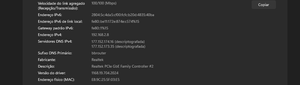 eles abaixaram os megas do link mais ainda consigo acessar !!! Velocidade do link agregado (Recepção/Transmissão): 100/100 (Mbps) Endereço IPv6: 2804:5c:4da5:cf00:fcfc:b20d:4835:40ba Endereço IPv6 de link local: fe80::be11:172e:874e:c574%15 Gateway padrão IPv6: fe80::1%15 Endereço IPv4: 192.168.2.8 Servidores DNS IPv4: 177.152.174.16 (descriptografada) 177.152.173.35 (descriptografada) Sufixo DNS Primário: bbrouter Fabricante: Realtek Descrição: Realtek PCIe GbE Family Controller #2 Versão do driver: 1168.19.704.2024 Endereço físico (MAC): E8:9C:25:5F:03:E5Me han suspendido durante "unas horas" sin motivo aparente.