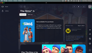 issue NOT SOLVED Other platforms (Epic/Steam/PS, etc) might offer full packs normally in certain mentioned regions (in screenshot below marked red) while EA app/website still bans the packs. This situation might differ from region to region. In this thread, the related information provided from the EA forum community team is outdated and partly conflicting with the fact. (above summary posted on 10th Oct 2025) ---------------- Sep 10th 2025 edited ------ Issue Not Solved yet. nothing else mentioned previously about EA app or EA official website in main post has changed. STEAM platform provides full TS4 packs for purchase properly while the EA App abides the regional standards shared by EA colleagues and restricts those packs for purchase. Epic platform provides full TS4 packs for purchase properly while the EA App abides the regional standards shared by EA colleagues and restricts those packs for purchase. (snap attached below) All these platforms mentioned above are checked in the same region that is listed by EA colleague impacted by the "Regional Standards". For windows PC users, you could check on Steam and Epic if you feel like to. The "solution" will automatically go back on once I remove it. ----------------- Sep 7th 2025 edited ------ nothing else mentioned previously in this main post has changed, except that on STEAM platform the packs are actually ON SHELF FOR PURCHASE properly, which is totally different than what the EA colleague shared before (I quoted previously). Unfortunately I'm a Mac user so this doesn't help me at all, but for all your PC players this might be a good news for you to check out on STEAM to see if this is the same for you in your regions. Since this seems to be the only way, I might keep updating the information I could find on my own to help me, or anyone who cares about this issue, understand what's going on, at least before I give up purchasing. ----------------- Sep 5th 2025 edited ------ With the new EP "Adventure Awaits" pre-order coming, the EP "Enchanted by Nature", which WAS ON SHELF FOR PURCHASE DAYS AGO, now has been REMOVED from EA Store. What's more, there's NO WAY to create bundles ourselves to purchase now. This is BEYOND RIDICULOUS. I wonder which kind, or which exact terms, of regional standards would so kindly and mercifully allow a certain product to be SOLD IN A PHASE before getting PROHIBITED?? Is this REALLY about standards that come from the impacted regions (listed by EA colleagues below quoted earlier), or is this actually an EA Policy??? With no exact terms quoted, with no exact time schedule announced, the only gesture that Sims4 Players who are shut out from purchase can read from the current situation is that EA doesn't care about these players buying or not. Only speaking for myself, I understand the marketing policy to promote new products and withdraw the early ones in order to concentrate the revenue or whatever to meet the internal KPI, however, it is a totally different thing to keep customers in the dark, only throw out vague explanation and publicly launch new product in such a self-conflicting way. "No clear information" is an information and an attitude also. ----------------- Aug 19th 2025 edited ------ For Sims4 Players who share the similar issues: the current situation is that for now there's "no way" for players from some regions to buy some of the packs of The Sims4 in any platform, as long as you're from the influenced regions. "Heya ChakahStrange I've gone ahead and merged your threads together as they were mostly on the same topic. The reality of the situation is that we must abide by regional standards and practices when offering content for sale in that region. This means that for any number of reasons in certain geographical locales we cannot offer content that may depict certain lifestyles, content, or cultural practices. So long as you're connecting to the PlayStation Network, Xbox Live, the EA app, EPIC Games or wherever you play The Sims 4 from this region, you won't see some of our content for sale for legal reasons." -- by EA_Cade (the related region information could be found in below from the reply of EA Community Manager, as I quote in here: Hi all, The Sims 4 and the DLC is not available in some regions of the world due to regional standards, I believe this includes China, Saudi Arabia, the United Arab Emirates, Oman, Kuwait, Qatar and Egypt. If you're currently in one of these regions, this would be why you're not able to download or view The Sims in the store. -- by EA_Solaire ) ----------------- edited notice --------------- to the players who are worried about this issue, please kindly check the reply from the EA community manager about the possible regional restriction to limit our purchase for certain packs. I only left this question on "Solved" is to let people to see this reply as a current purchase status, but it doesn't mean that we're able to buy those packs yet. And until this edited notice, I haven't got any reply on what the restriction really is, whether it's permanent or not, or what will the schedule to solve this be put on track. Aug 18th, 2025 ----------------- the original post ------------ As shown in my pics attached, I can't purchase the game pack "Growing Together"(in my wishlist) or "Businesses & Hobbies". The page of the pack display says "Not Available for Purchase / This game is no longer offered in our catalog, but there are tons more games to find. Just head to the browse page and start exploring." But the thing is, if I add "Growing Together" into a bundle and purchase other 2 packs in the meantime, the paying page will proceed. I'm a Mac user and I'm sure my EA app is updated for the recentest version. So, all I want to know is that is this a technical problem? (If so, how can I fix it?) Or is it just a promotion strategy that I can't purchase the above 2 packs only by themselves? (as all I can purchase solely on the app are those packs on sale)? I've seen lot of