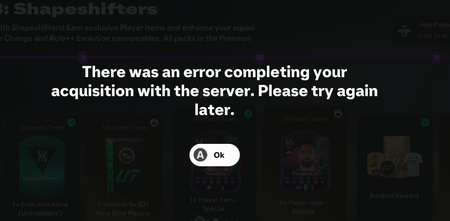 essas duas mensagens(primeira direto no jogo e a segunda no webapp) aparecem quando tento adquirir o passe premium. Temporada passada nao tive problemas mas nessa nao consigo comprar. Jogo pelo fc 25 showcase isso interfere? alguem sabe de algo?282Views3likes11CommentsErro de atualização fc25