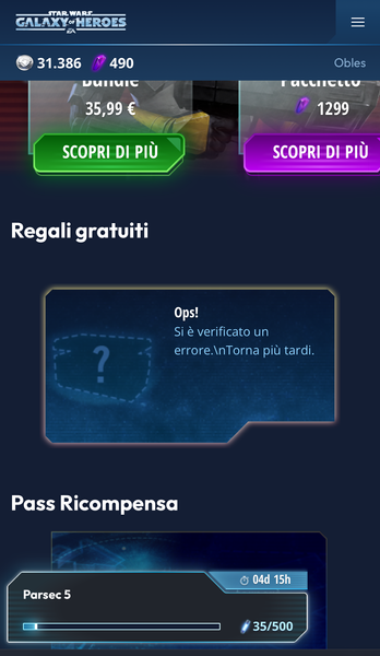 Buongiorno, [SWGOH] Ho scelto il pacchetto Jedi Consular Special, doveva essere gratis inserendo il codice promozionale JEDITEMPLE ma non è apparsa alcuna finestra dove inserire il codice e invece è partito subito il pagamento, come posso farmi rimborsare? GrazieSolved"L'età non corrisponde"
